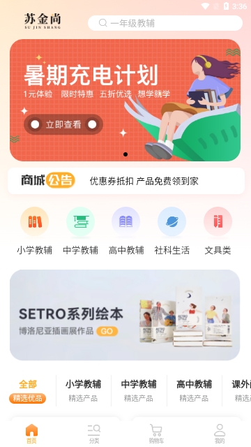 苏金尚APP是一款专为小、初、高中生所准备教材、文具购物上陈该软件,这款软件汇总提供了非常丰富的小初高的教辅学习资料,大家可以随意的来这里挑选购买到,还包含了课外阅读、社科生活等分类,各种最新教辅资料都可以查看到。