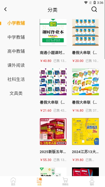 分类页面拥有各种教育用品的资源,选择类型查找需要的教辅;