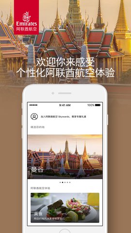 使用个性化的阿联酋航空App(iPhone和Apple Watch),以自己的方式探索世界。