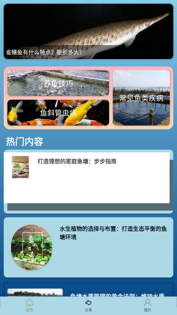 1、养鱼技巧,软件提供了实用的养鱼技巧,用户可以在线进行学习掌握技巧。