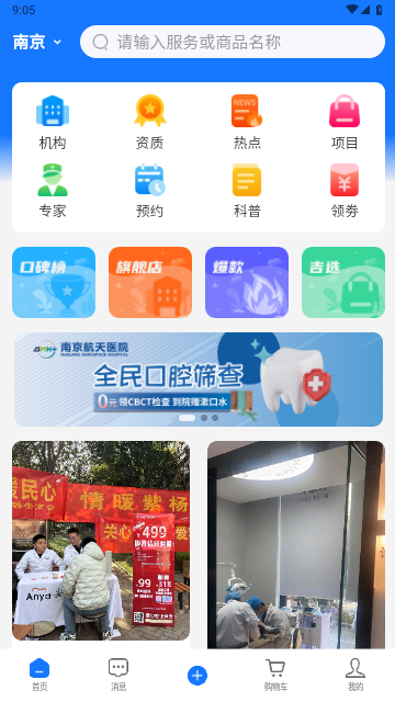 用户可进入到机构中心来查找各个口腔服务机构信息,可关注机构动态信息。