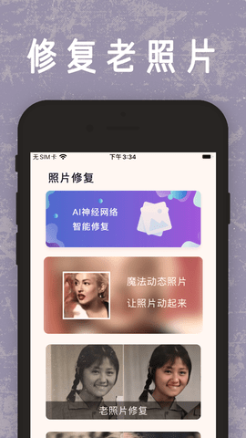 岁月魔法app是一款能够帮助我们快速修复老照片的软件,简洁的页面丰富的功能让我们能够轻松快捷的修复各种老照片,还有智能辅助帮助我们更加细致的进行修复非常方便