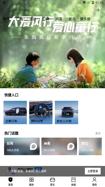 发现:品牌资讯、用车口碑、车主问答、车主俱乐部等功能;