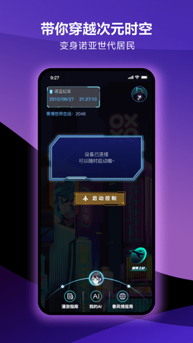 点击“漫游指南”,小编惊奇地发现,为了让用户有代入感,网易春风居然还装模作样地设计了一下“世界观”。根据官方介绍,我们现在正处在一个虚拟人物和人类共存的元宇宙世界,通过这款设备,玩家可以“穿越”到2510年的诺亚纪元,和元梦天使AI(内置虚拟形象)一起战斗,对抗与人类为敌的AI反派。