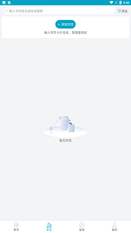 3、通过输入学员的电话或者是姓名对于学员的信息内容进行搜索寻找,添加学员的卡片信息,更加轻松的进行管理。