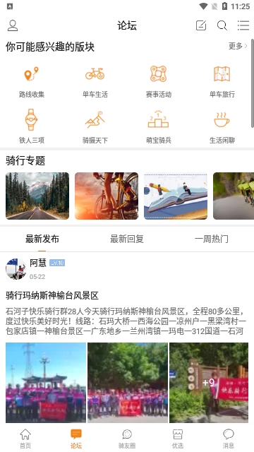 2、动态:共享,汇聚各种炫酷的骑行动态,快来这里,发现更多志同道合的骑行好友。