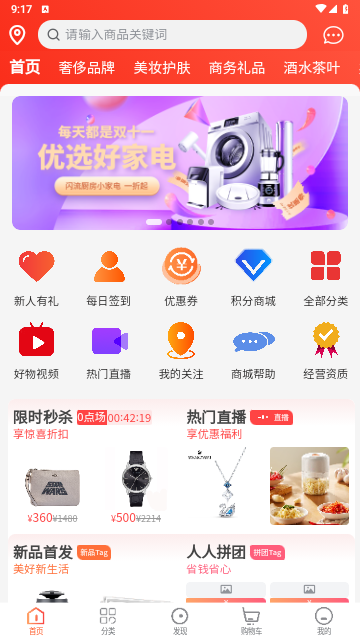 一款随时随地便捷购物的APP;为您带来随时随地畅享便捷的购物体验;限时秒杀优惠到底、拼团购物分享有礼、视频展示直播互动、爆款热卖超值拥有;生活消费包括:家居百货、美妆护肤、厨房电器、数码潮物、腕表饰品;企业采购涵盖:办公用品,员工福利、礼品营销、招待用酒一站式采购...