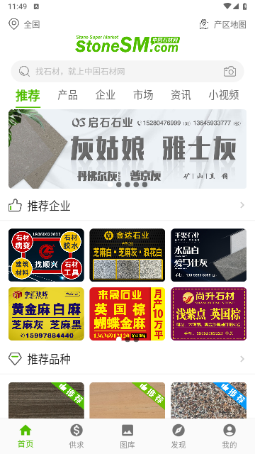 2、登录后,大家可以看到首页中推荐的企业,或者是根据自己的情况在搜索框中输入自己需要的石材。