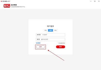 1、下载本站小编提供的安装包并运行,在当前画面中选择你的身份,如果还没有账号的朋友,单击注册!