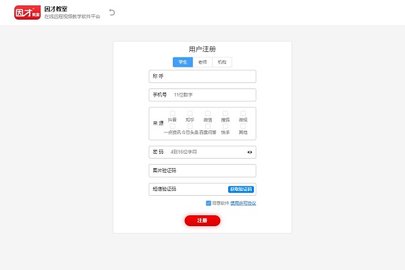 2、以学生为例,在这里输入你的称呼、手机号、来源、密码、图片验证码、短信邀请码,并勾选同意软件使用许可协议,单击注册。