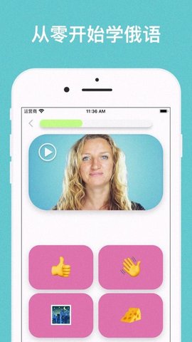 2、通过常见的俄语学习场景,从俄语字母开始学习,匹配真人教学视频和俄语翻译。