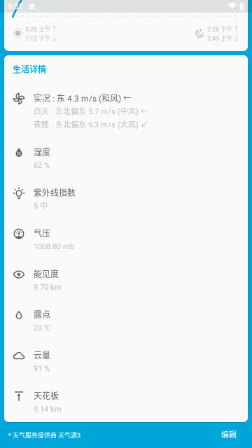 1、关于每一天的日出、日落时间,我们也可以在这里及时了解到。