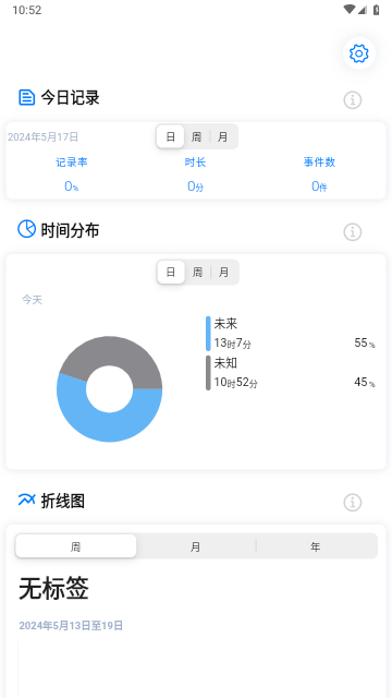 软件中将时间数据通过图表来进行了统计展示,便捷用户查看时间统计情况。