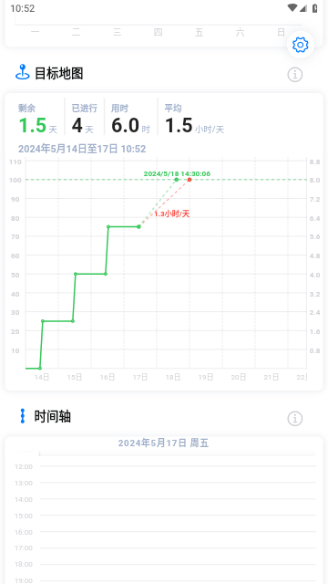 可以通过时间轴来对时间进行实时追踪,随时了解历史时间投资消耗情况。