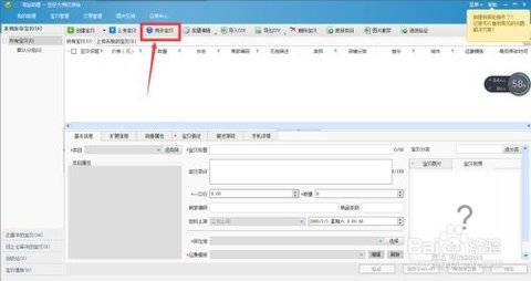 进入淘宝助理的宝贝管理界面后,点击:同步宝贝。