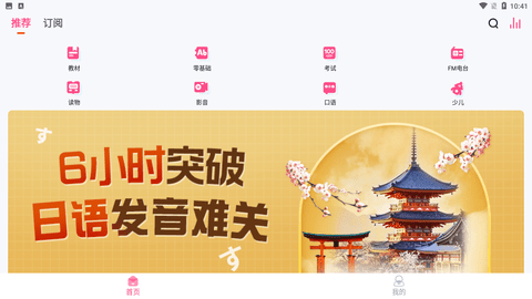 3、海量日语:系统每天都会自动更新上千万的日语学习资料,电台、读物以及考试一应俱全。