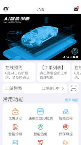 JNS提供有智能检测、智能保养、智能诊断等多种功能可便捷用户维保办公使用,用户可对工单详情信息进行查看来了解汽车的检测方案以及基本信息等详情内容,软件中会将汽车修理厂的员工业绩进行统计。有需要的朋友们不能错过,快来下载吧。