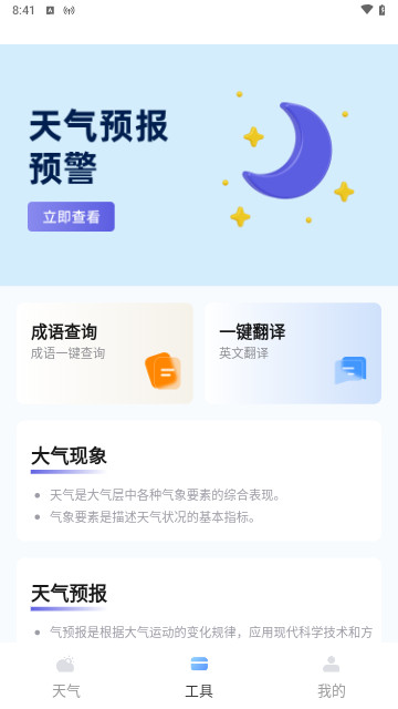 1、实时天气预报信息,在线一键查询使用,操作简单便捷。