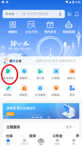 津心办APP提供天津来返社区报备服务