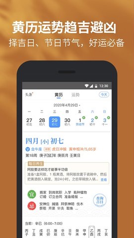 *传统老黄历:每日宜忌、每日运势、财运桃花、属相相冲、吉神方位、灵签占卜、生辰八字、八字姻缘、周公解梦、结婚吉日,助您趋吉避凶,好天气、好运气;