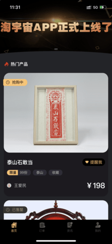淘宇宙App是一款文化商品交易平台软件,围绕齐鲁文化,将文化艺术与齐鲁文化相结合。运用互联网技术赋能文化艺术产业落地。为艺术家和收藏爱好者提供一个便捷简单的文创服务平台,让艺术赋能每一个人,让传统文化通过互联网实现更多可能。