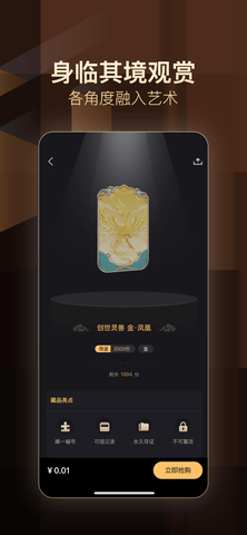 在这款软件中,每一件收藏品都有着独一无二的产品序列号,每一件都不可替代,大家可以在这里展开一场线上的艺术收藏之旅。不仅能够在这里保存收藏自己的作品,分享出去,让大家一起欣赏,而且还能够安全交流、交易。