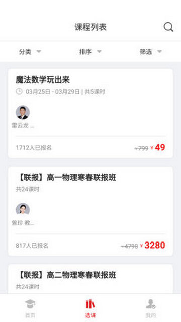 1、学员可以在当前应用中查找适合年级、学科的课程自主学习。