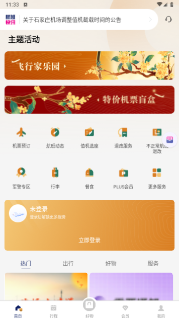 1、在主界面我们可以点击“手提/托运行李”功能即可进行行李额的购买。