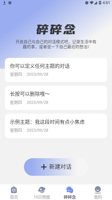 4、15天天气预报:天气情况早知道,预知天机出行无惧。