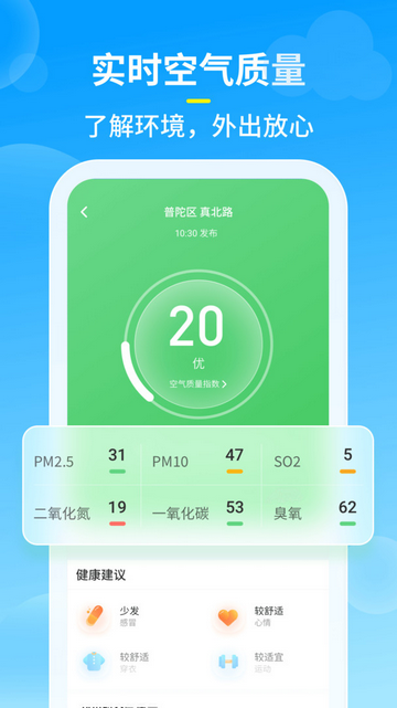 晴天雨天各项指数综合看,轻松安排户内外活动,让生活更加轻松。
