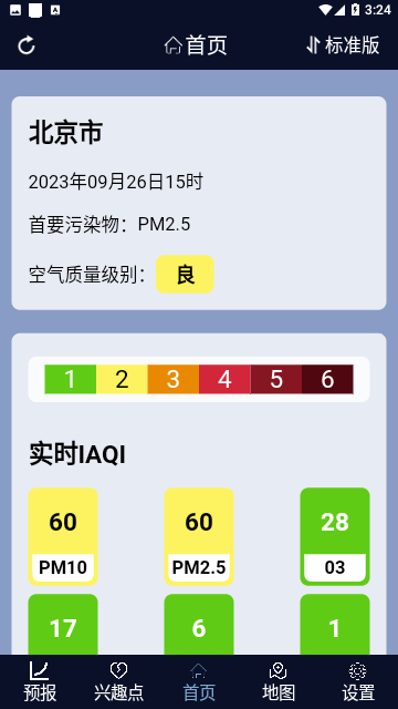 2、提供实时的空气质量指数,让你了解周边的环境质量。