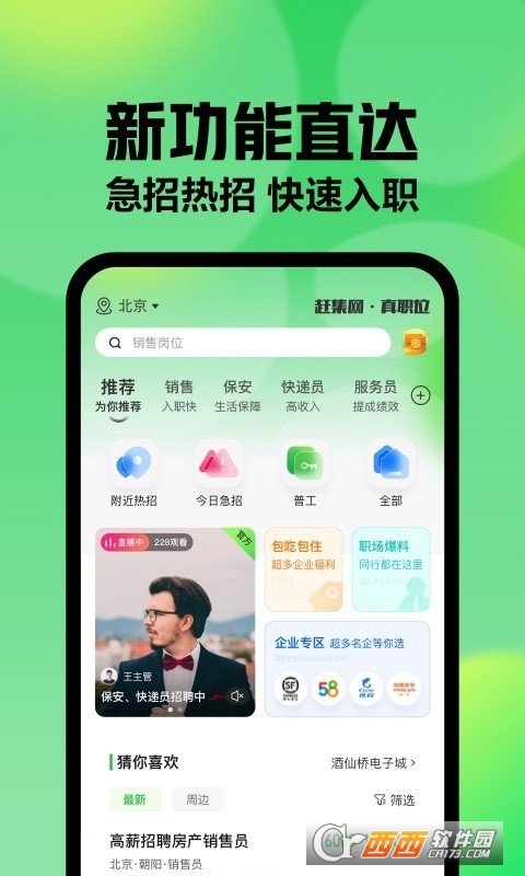 赶集网下载手机版是赶集网官方开发移动APP应用,赶集网下载手机版方便用户发布和获取免费消息。主要可以在上面进行二手交易,招聘求职,同城活动,交友等,赶集网有海量高薪岗位,薪资福利、优质企民企都可以筛选,点一点就能快速匹配,快速定位好工作.
