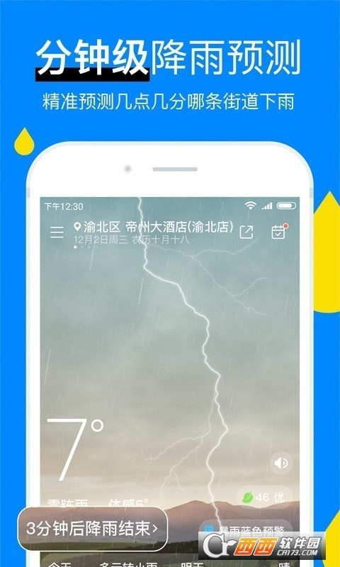 分钟级降雨数据:提供分钟级降雨数据,能准确至几时几分下雨下雪,还能准确预测雨停雪停时间。