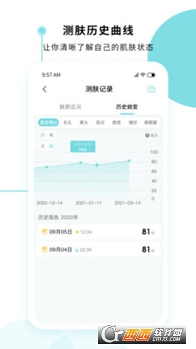 测肤历史曲线,让你清楚了解自己肌肤的状态。