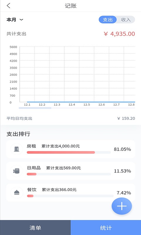 4、根据你的记账记录自动生成饼图和趋势图,清晰了解钱花哪儿了。