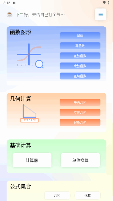 数学函数图形计算器这款软件用户们放心的使用就行了,所有的服务用户们放心的学习就好了,多种服务用户们放心的在这里学习,不仅可以满足学习中需要的几何计算和常规计算需求,还可以轻松的生成函数图像,让大家可以更加直观的理解,需要的朋友们快来下载吧。