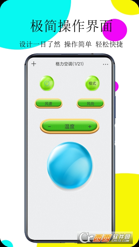 空调遥控界面支持控制空调开关、温度、模式、风速和风向等功能。
