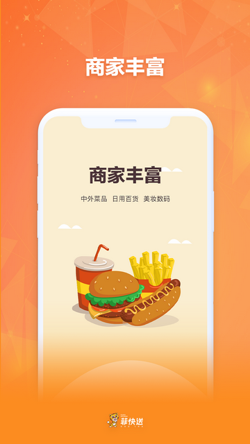 菲快送是一款专为菲律宾华人打造的智能生活平台,集外卖、超市、话费充值、货运等服务于一体,提供全中文、24小时订餐、送货上门,让您享受国内软件的高效服务!