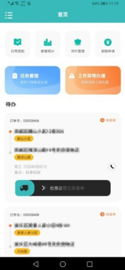 3.支持订单管理,骑手可以在软件中分类查看订单的信息,并可以了解顾客收货的状态。如果订单有什么问题,也可以第一时间发现,及时解决;