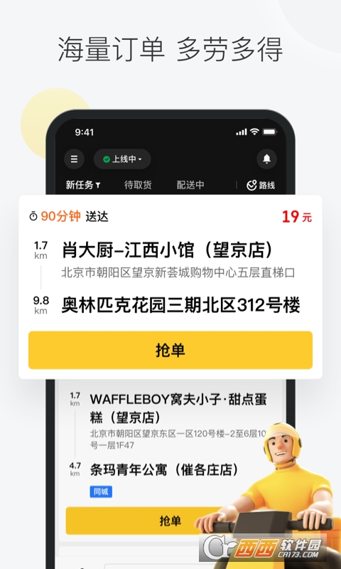 1.增加新骑手开工帮助和首单指引,辅助新手快速了解配送流程、掌握跑单技巧