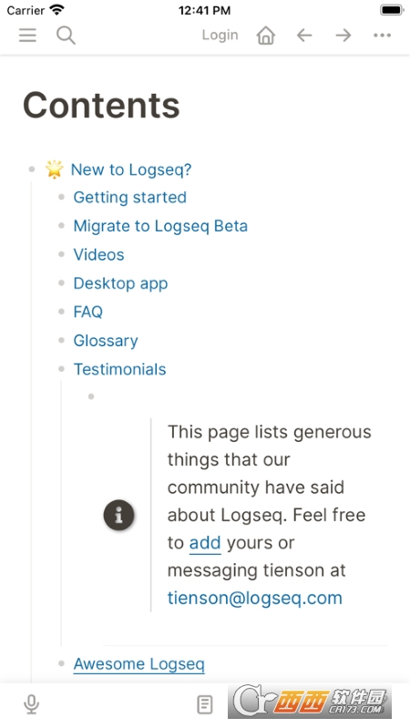 Logseq大纲笔记是由国人所推出的一款大纲笔记的软件,目前同样也是在GitHub上面进行开源,这款笔记现在已经完全的支持多种客户端,在满足用户使用的情况下可以进行使用这款笔记方面的软件,需要一款笔记方面的工具的可以尝试一下这款Logseq大纲笔记!