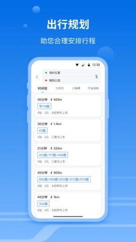 3、线路规划:根据起点和终点规划公共交通出行线路;