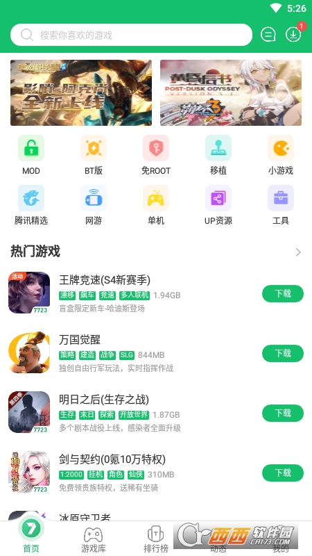 7723游戏盒安卓最新版,7723游戏盒可以说是当前非常受欢迎的一个游戏盒子,不仅是因为它上面的游戏种类多,游戏更新快,并且您还可以在7723游戏盒字上面搜索到当前热门的手游攻略,当前玩家们最需要解决的游戏问题都可以在这里找到答案。7723游戏盒还提供一些BT版游戏资源,可以不氪金当大佬,还有专门的线上互动交流版块,本站带来7723游戏盒安卓最新版下载,感兴趣的朋友们也可以前往官网(了解最新动态。http://www.7723.com/)了解最新动态。