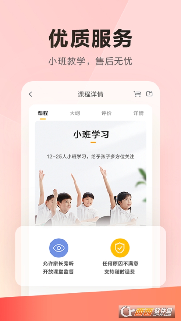 软件中提供的所有课程都有着特别优惠的价格,每节课程选用的都是小班制教学