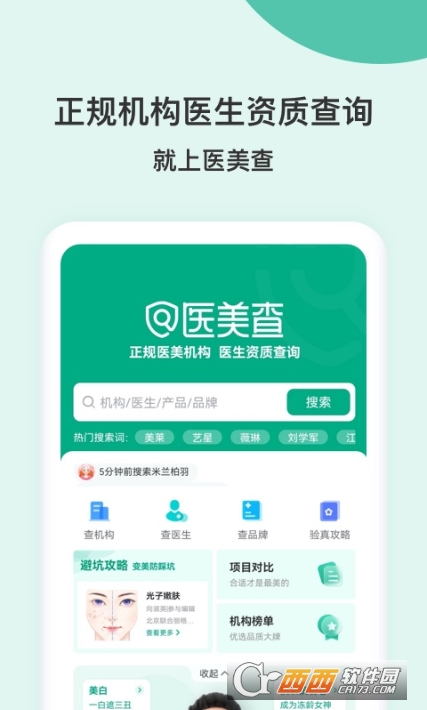 医美查:这是一款提供线上咨询的医疗美容服务平台。平台内有非常多优质美容机构,全部都是正规机构,可以为用户更好的提供优质服务,可以通过线上问诊,对比性价比再来选择自己喜欢的美容机构,不用怕被坑,爱美的小伙伴们可以下载医美查试试哦!