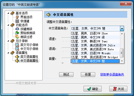 独立的中英文语音属性调节,满足您对中英文朗读的不同要求