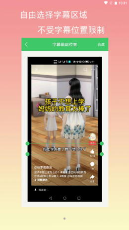 2,对于各种字幕拼接以及对应的各种图片模式来进行管理时,用户可以自由的进行各种长截图的选取和进行移动缩放,自由获取自己需要的内容。