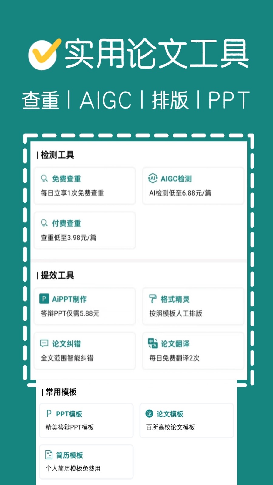 2) 查重:免费论文查重,全体用户每日都可享受2次免费查重,超长字数限制(10万字以内)。