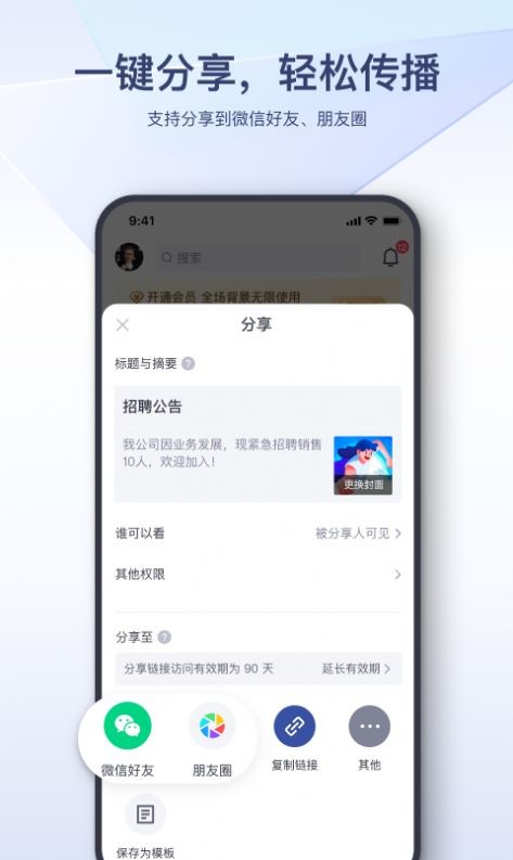 提供一键分享到微信和朋友圈,方便记录分享和汇报;