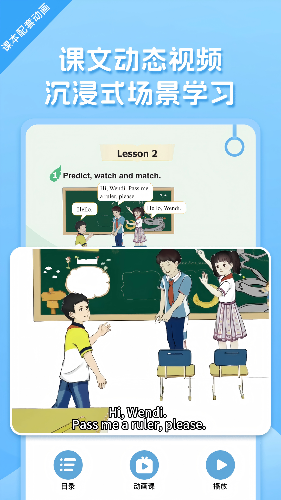【亮点一】点击播放:仅需轻触课本内容,即可即时播放对应的音频,让学习变得触手可及。